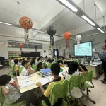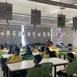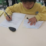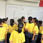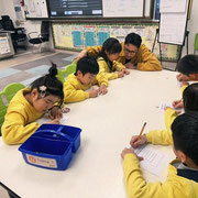 The students have been working on a multi-part writing exercise so that they can improve their ability to write paragraphs and stories. The students first worked in groups to come up with words that related to a topic to help them generate ideas to start the writing process. They then worked as a whole class to create a story web together. Different students came up with ideas for setting, characters, problems, and events. Once they understood how to create a story web, they then got into small groups of two or three students to create their own story webs on a large piece of paper. Then the students learned how to take their ideas from the various story webs and organize them into a more formatted plan. As a class they separated the story into at least 5 paragraphs using the story web that they made together. After that, they went back to their small groups and planned their individual stories while also adding some more personal details or changing parts so that all the stories are different from each other. They also learned about the different reasons authors start new paragraphs when writing stories - time, place, topic, and people talking. Next they took their individual plan and wrote out their stories. The stories were checked for grammar mistakes and finally they wrote their final version on a cauldron as they have “cooked up” an interesting and scary story!