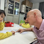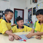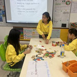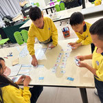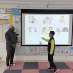 UELS.1 students have been working on digraphs during phonics lessons. We paid particular attention to the voiced and unvoiced /th/. In the first lesson, we introduced how to make the sounds. We focused on the position of the teeth, tongue, and lips and discussed soft and hard breathing using images and a mirror. Then, using a phonics video, we introduced and mimicked common words using the two sounds. In the following two lessons, we isolated voiced and unvoiced sounds. In both classes, we did a whiteboard activity where students wrote words using the letter sounds made by the teacher. This activity helps students decode new words when reading and improves their ability to sound out and spell words when writing (encoding). We then did short readings. We approach reading two ways. The first way is to analyze the story and identify the specific sound to improve decoding skills. The second is team reading races. The races help students trust their knowledge and attack a reading with confidence. (pic 9,10) We finished the unvoiced /th/ class with a whisper game to strengthen the use of phonics for writing. For the final activity in the voiced /th/ lesson, students played a Roll and Read game.