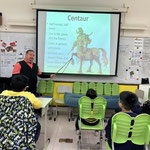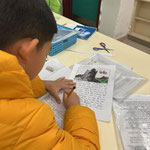 To begin, the students read the story, “The Blind Men and the Elephant” in which some blind men describe an elephant and its parts. We looked up the new vocabulary and talked about the story. The students learned how to make a “simile” describing something as something else and practiced making our own in class. Next we did a worksheet with a detailed description of a nature scene, in which a boy is looking out over a lake and describing what he sees. We circled the descriptions and tried to draw a picture of them as we recognized them. Then we talked about the creatures that we already knew; dragons, unicorns, cats, and dogs. We then tried to think of new creatures and talked about what we remembered about them. The students talked about some Chinese creatures that they knew. Finally, each student made their own creature or found a creature to talk about. They drew a picture of the creatures and wrote a story or described it in detail. Some were scary while others were very cute. They talked about if it was good or bad, where it lived, what it ate, and what did it like to do. Afterwards, each student introduced their creatures in front of the class and told everyone about them. This was a very fun assignment.