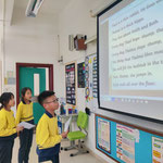 This week in grammar class we looked at pesky pronouns! Pronouns help us to avoid too much repetition in our writing and speaking. Some pronouns are – I, he, she, it, we, you, they. To begin with, we brainstormed the pronoun words that we already knew and the teacher wrote them on the board. To help us to review these words, students demonstrated representations of different pronouns whilst the class created sentences to match. Then, we had to decide which missing words to add to some sentences. We worked in our teams to identify the correct pronoun to add before showing the teacher our answers on our whiteboards. Each sentence had a fun picture to help us!