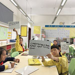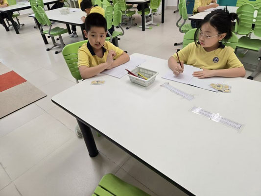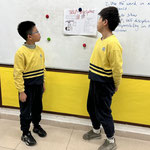 After we analyzed some famous superheroes, students invented their own characters (think "Thunder Panda" or "Lady Lightning"). Each character needed to have three superpowers and one weakness. We then spent a little time practicing drawing our superheroes. After our characters were made, the teacher explained the different elements that make up a comic strip namely, captions, speech bubbles, and onomatopoeia (sound effects). The teacher used AI graphic tools to create a comic strip to show as an example for the students. The next step was to do plot planning. So after a short lesson about this, the students plotted short adventures, wrote speech bubbles, and inked final drafts onto comic strips. Our classroom buzzed with phrases like "ZAP!", “BOOM!” and "I’ll save you!" The project culminated in a "Comic Con" exhibit, where classmates shared their heroes’ missions. This activity boosted confidence in writing, sequencing, storytelling and expressive language. See their heroic journey in the photos which started from sketches to full-color comics!