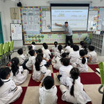 At our school, learning English isn’t just about textbooks—it’s an adventure! This month, UELS.1 students embarked on a project to describe places better, using our campus as their classroom. Students kicked off by exploring the school grounds and sketching favorite spots like the flagpole area and the garden. Drawing sparked creativity, letting them connect personally with their surroundings. The teacher highlighted keywords such as flagpole, palm tree, and stage from their sketches, bridging art to language. Students then crafted sentences like, “I play on the stage.” Next, they discussed how to describe the school grounds and locations of buildings by labeling a campus map and learning the English equivalent for buildings and places they know so well. Visual learning turned geography into a game! Then, students pieced together a campus tour script in groups using their new vocabulary. Collaborating on a “gap-fill” activity made grammar fun and accessible. The grand finale! Students became tour guides! Armed with their scripts, they led peers around campus. Movement and role-play transformed lessons into confidence-building moments. This project met diverse learning styles head-on by blending art, exploration, and teamwork. Students didn’t just memorize words—they experienced them, turning abstract concepts into real-world skills.