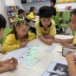 To practice using these verbs, the students then worked on Daily Talk presentations. They shared pictures from their time in kindergarten and used the simple past tense to describe their experiences. This helped them practice speaking and using the new verbs in a fun and personal way.