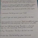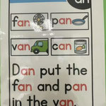 To encourage the students to write sentences on their own, using the word study words for this week ( “an” words) the teacher started by modeling the writing of some simple narratives. This helps the students understand what their finished work should look like.