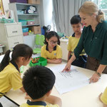 We encourage all the students to join in the activities, by making them fun, but still challenging, so they try hard and do their best! When the students are invested and committed to the lessons, they begin to understand the concepts and language well enough to answer questions and explain the science of the water cycle on their own.
