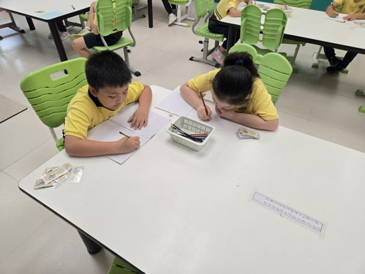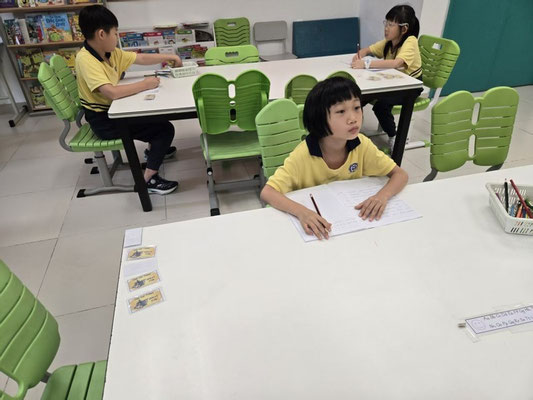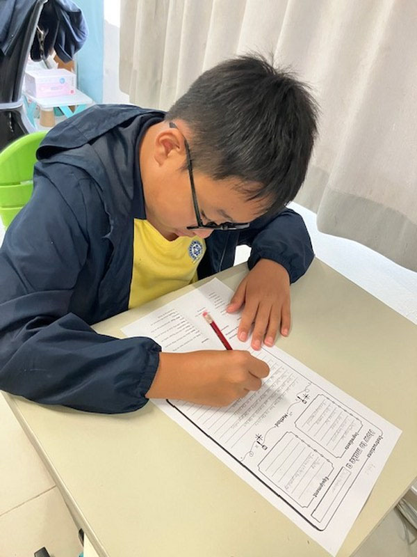 These activities are all designed to allow the students to be creative and have fun while using English. It starts off small, with only a few sentences. Eventually, we aim for students to be capable of producing a passage like in the final photo. With hard work and focus, we are confident they can do it. Well done ELS students!