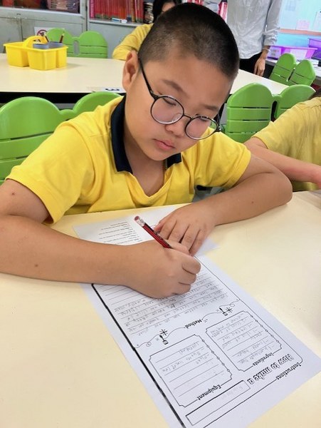 During the planning phase, the students worked diligently to write, draw and color their mind maps as they shared their ideas with their table-mates.